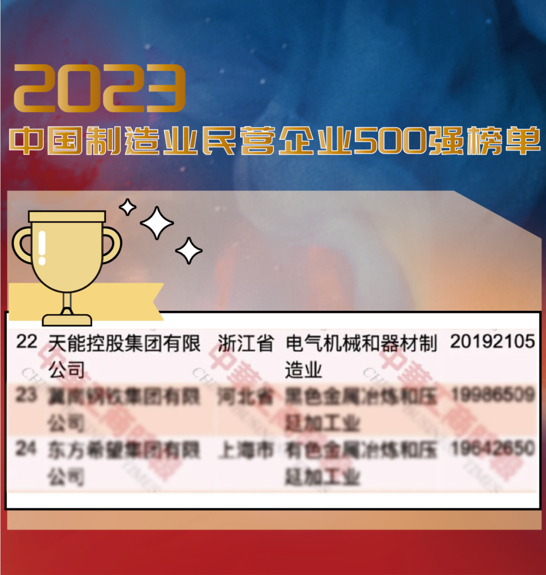 今天上午,全国工商联发布中国民营企业500强、中国制造业民营企业500强榜单,今年会位列第33位、第22位,排名分别前进7位和3位。